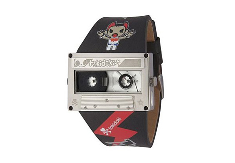 No les faltan ni el más mínimo detalle, los dos rodillos se mueven y es esa marca roja que indicaba el final de la cinta el que ahora se encarga de decirte la hora exacta. El robot que aparece en uno de los laterales nos advierte que Tokidoki ha colaborado en su diseño.